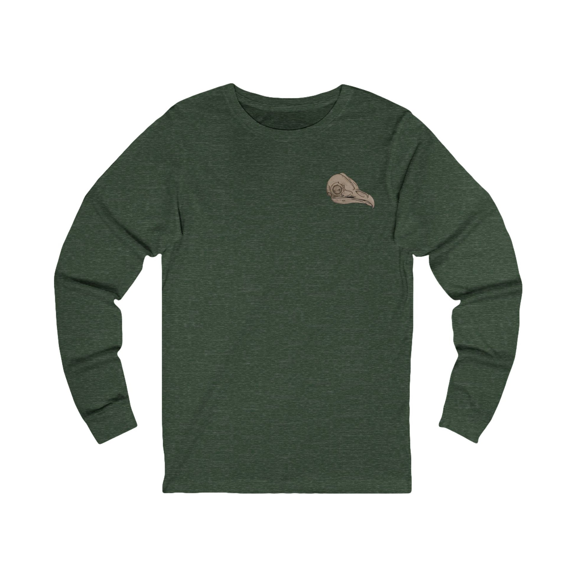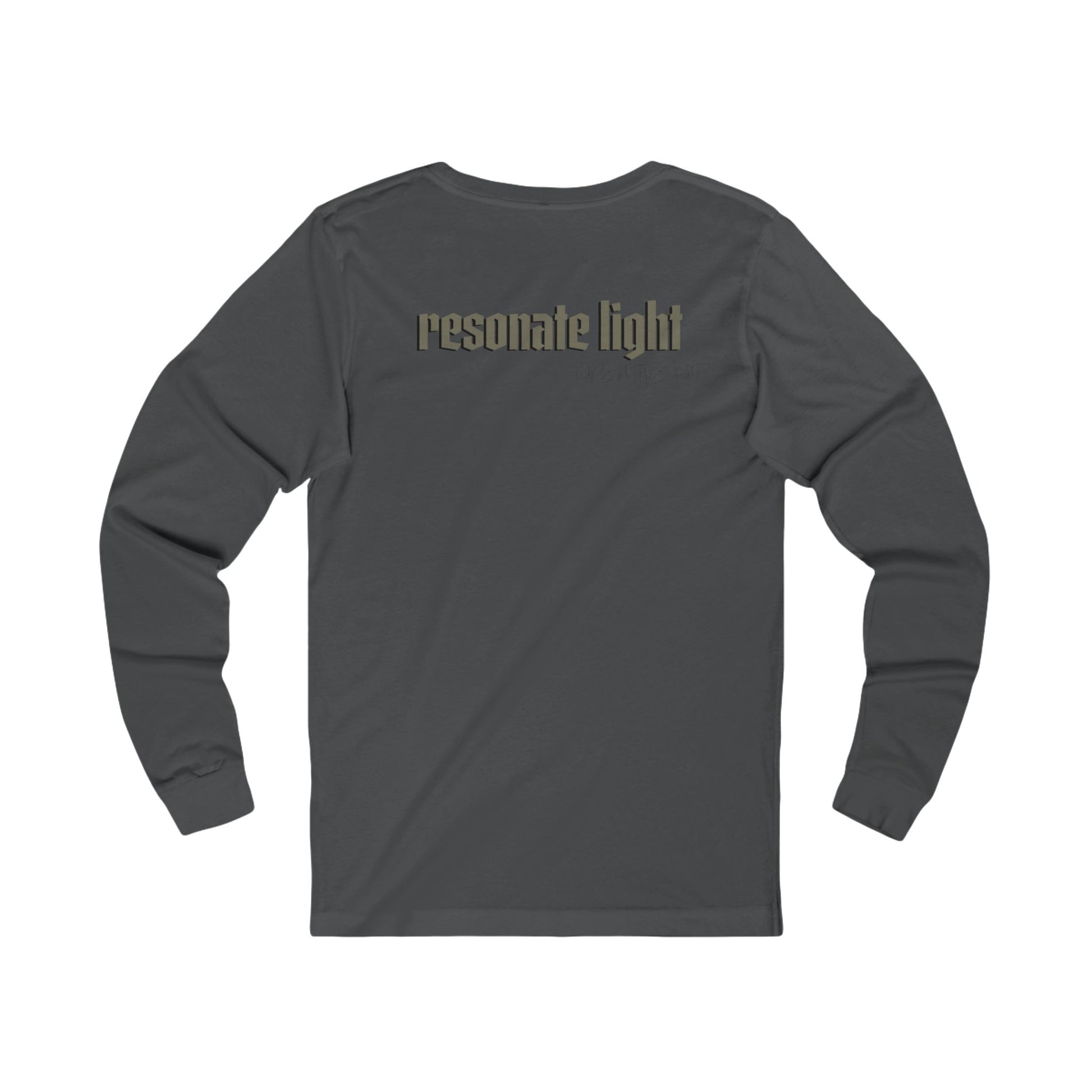 Resonate Light Long Sleeve Tee — Subtle Chest Skull Graphic & Back 'resonate light' Logo